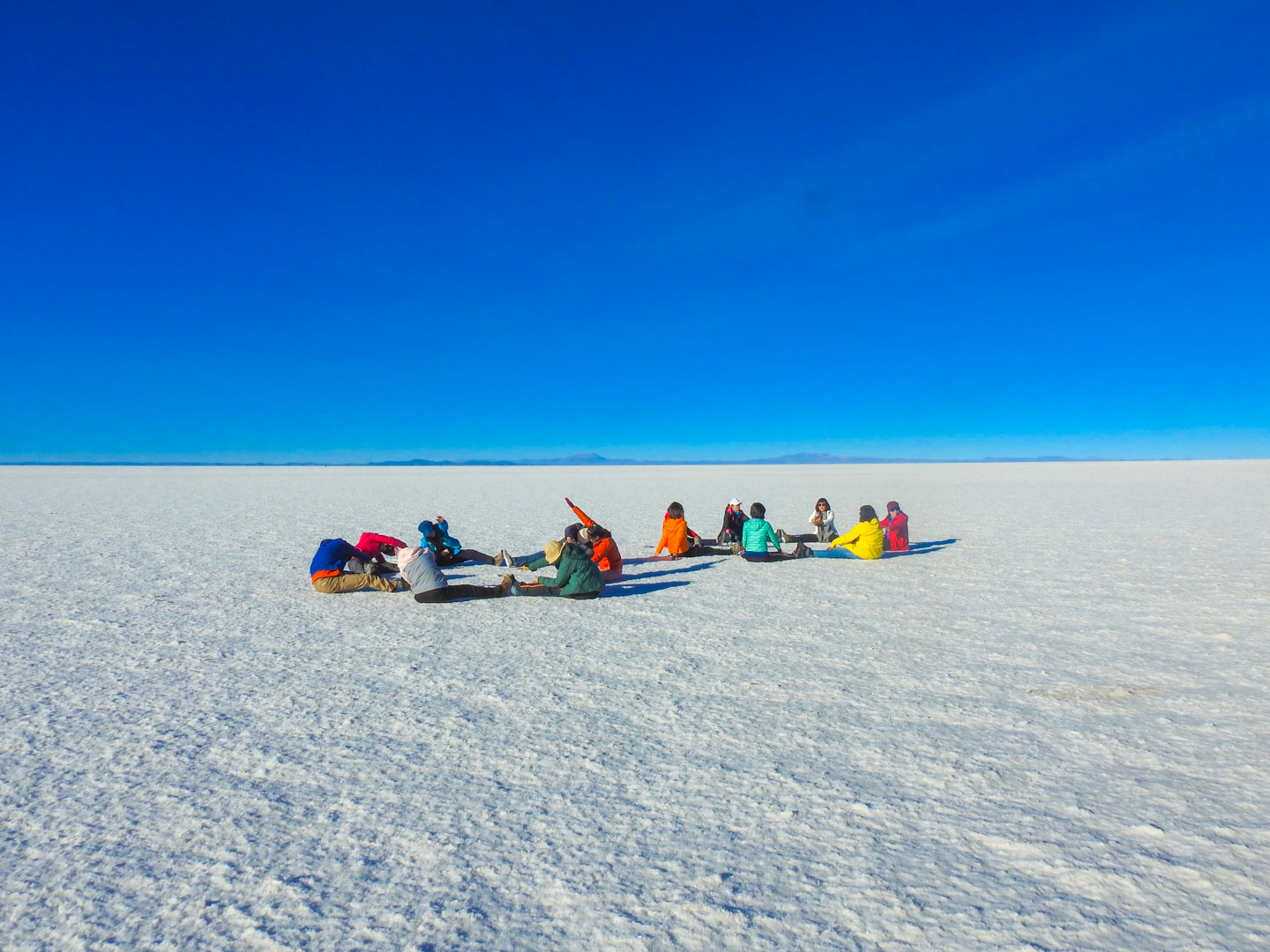 Next, take time to organize your group for fun perspective- and proportion-distorted photos, set on the blinding white surface of the salt flats, playing around with the scene, you can be sure to take some funny, and memorable shots!